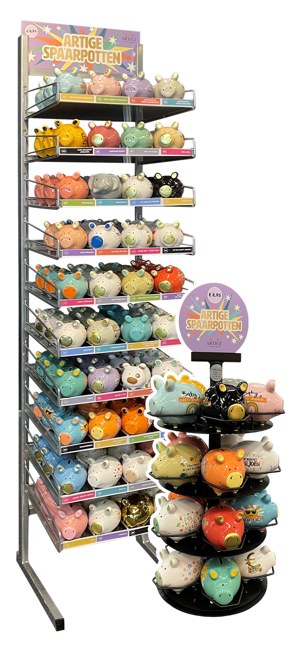 Een cadeautje dat verkoopt! Bent u op zoek naar een product dat gegarandeerd de aandacht van uw klanten trekt? Artige Spaarpotten zijn een origineel cadeau, perfect voor een breed publiek. Deze vrolijke spaarpotten zijn er in verschillende kleuren en designs, allemaal voorzien van grappige, inspirerende en toepasselijke teksten die aansluiten bij allerlei gelegenheden. Ideaal voor verjaardagen, bedankjes of spontane cadeautjes – een compacte en veelzijdige aanvulling op uw assortiment. Altijd leuk en praktisch!