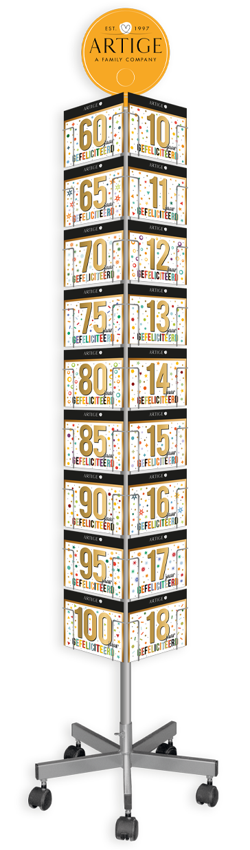 Ontstaan uit het succes van de Daisy wenskaarten. Met alle toppers en nog meer leeftijden van 10 – 100! Met Goud Waard zet je de jarige of jubilaris echt even in het stralende middelpunt! Goud Waard wordt geleverd in een smalle molen. Daarvoor is vast wel een plekje te vinden.