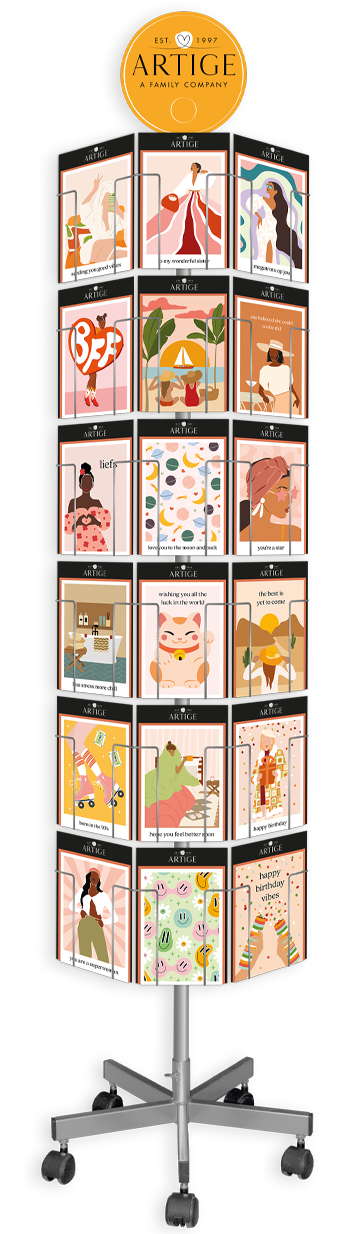 Een frisse en verrassende collectie. De designs, kleuren en teksten hebben een jongere doelgroep weten te bereiken. Lola bevat wenskaarten voor veel gelegenheden maar daarnaast ook kaarten die je niet in iedere standaardcollectie zult aantreffen. Een supermooie molen die iets unieks toevoegt in elke winkel!