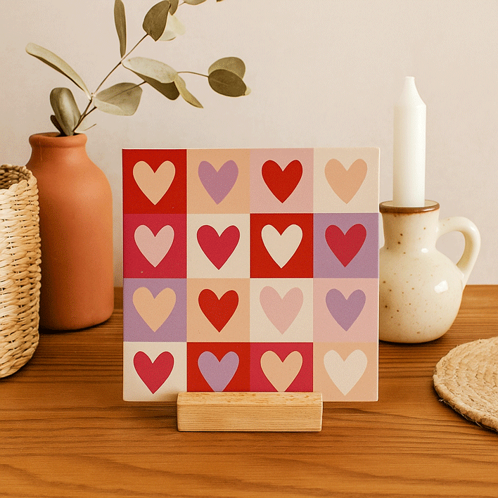 Van liefdevolle teksten tot schattige ontwerpen: met deze collectie bied je jouw klanten hét perfecte Valentijnscadeau. Deze 21 unieke decoratietegels zijn met zorg en liefde ontworpen door ons eigen designteam in Doetinchem en worden geproduceerd in Europa. Combineer de tegels met een houten presenteerblokje, geschikt voor één, twee of drie tegels, en creëer een extra finishing touch.