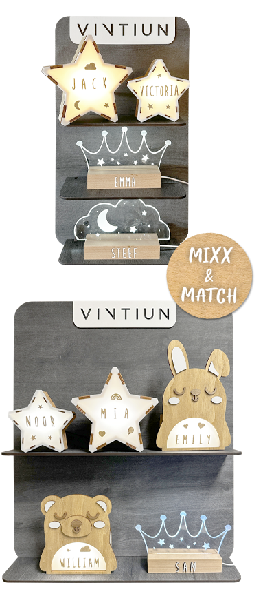 Met onze nieuwe mix & match optie van verschillende displays, kan de collectie precies worden afgestemd op de wensen van jouw klanten. Neem contact op om jouw eigen Vintiun display samen te stellen.